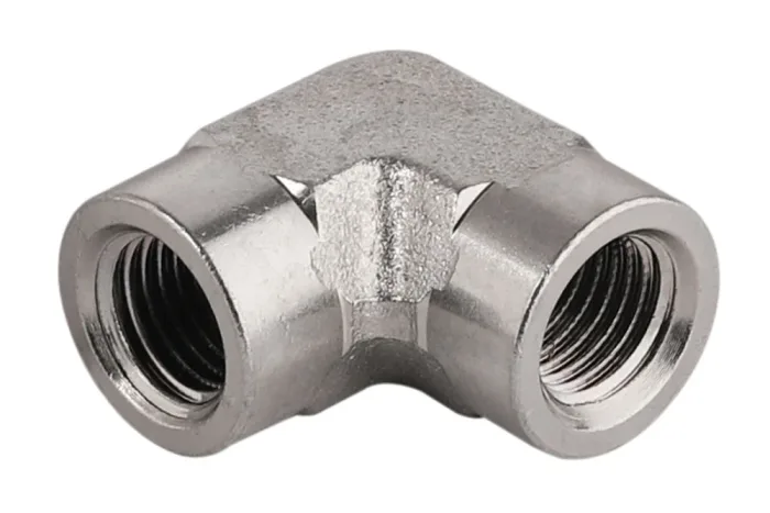 90° high-pressure adaptor type A306 with internal NPT threads (thread seal). Material: AISI 316L steel.