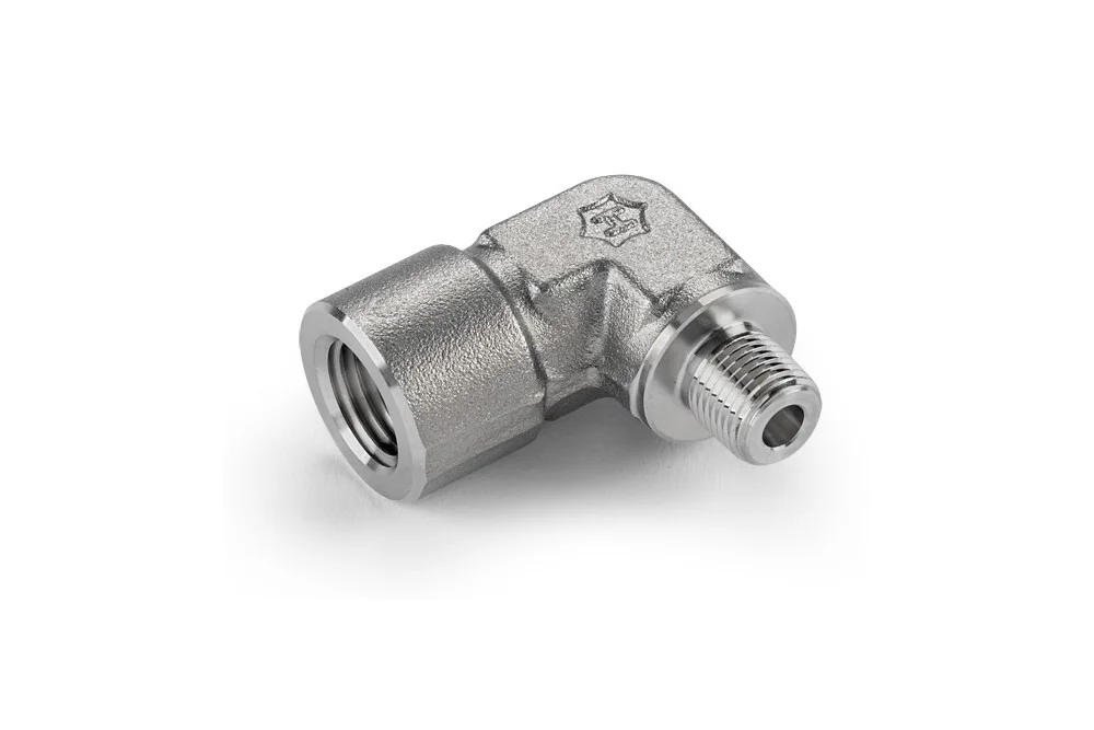 90° elbow with internal and external NPT threads, type 116H, primarily intended for the chemical, petrochemical, pharmaceutical, energy, nuclear power, and process engineering industries. Material: AISI 316 steel.