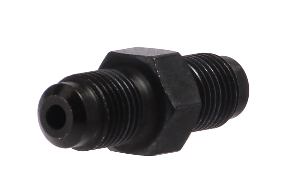 Adapter with external BSP thread (sealing on external cone 120°) and external BSP thread (sealing on external cone 120°) allowing the connection of quick couplings and UHP hoses to each other, as well as connecting them to UHP connection blocks. Material: black galvanized steel. Working pressure: 3000 bar.