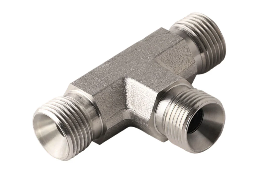Adaptor – high-pressure tee type A109 with external thread 3 x BSP (seal cone 60°). Material: carbon steel, galvanized.
