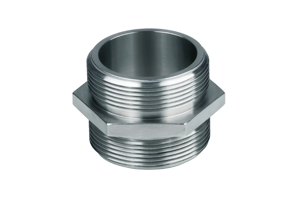 Hexagonal adaptor ADN with external BSP and BSPT threads is designed for connecting pipes (hoses with fittings) and components of industrial installations. Depending on the size and manufacturer, the fittings have various shapes of the flange for a wrench. Material: galvanized steel. Sealing: flat (face) – BSP; on the thread (Teflon tape) – BSPT. Working pressure: 25 bar.
