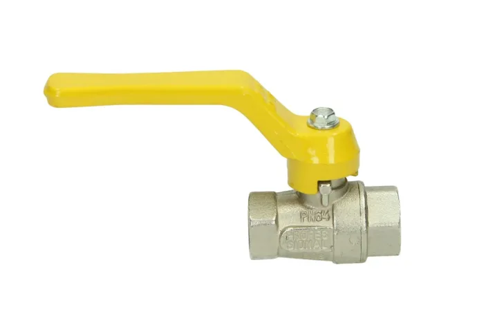 Universal ball valve type 7100 intended for gas installations, in pressure class MOP 5-20. Complies with the requirements of the PED Directive 2014/68/EU and 2009/142/EC, in accordance with standard EN331 + A1. Maximum constant working pressure across the full temperature range. Body material: nickel-plated brass. Ball material: chrome-plated brass. Lever material: aluminum. Ball sealing: PTFE. Stem sealing: FKM + NBR. Connection: BSP thread. Operating temperature: from -20°C to +60°C.