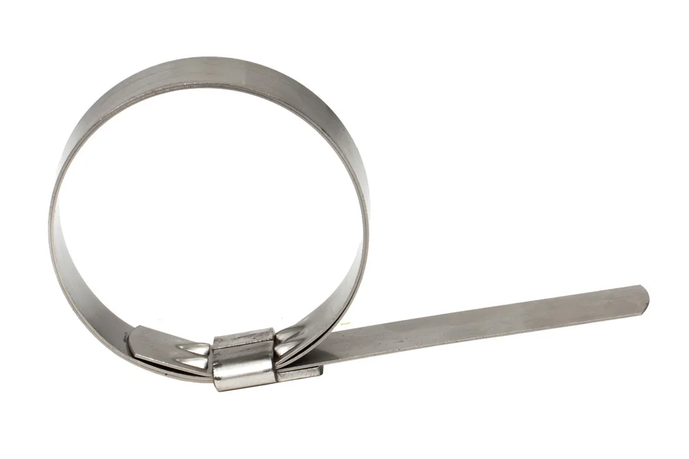 Double loop band with built-in Band-It® Ultra-Lok® fastener made of AISI 201 steel designed for the most demanding applications. The double loop increases the strength of the clamp. The smooth surface of the band and its proper installation on a non-corrugated hose create a tight fitting of the end, preventing leaks into the clamp. Installation using electric tools BD-UL9010 or BD-UL4000B. For mounting 1/2″ clamps to the mounting device, a BD-M09387 adjustment washer should be used. Material: AISI 201 steel.