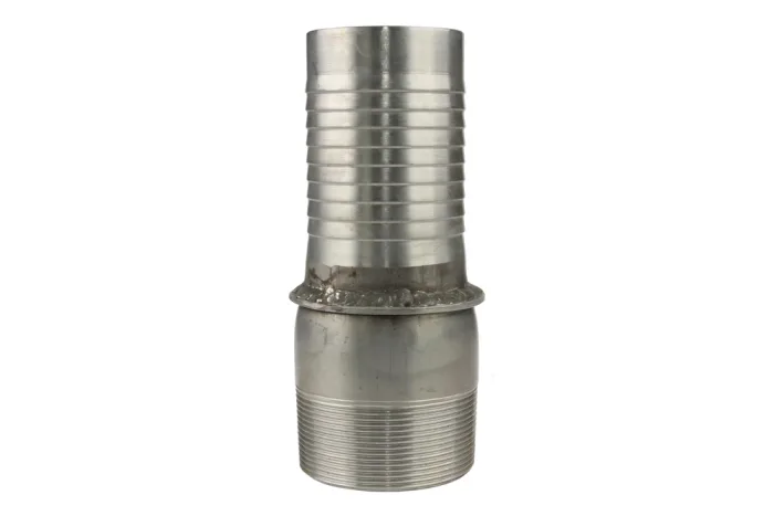 CNPH HEAVY DUTY end fitting with external tapered BSPT thread made of galvanized steel with a “tail” for high-strength hoses. Designed for rubber and plastic industrial hoses. Installation using special CNFH type clamping sleeve. Material: carbon steel, galvanized.