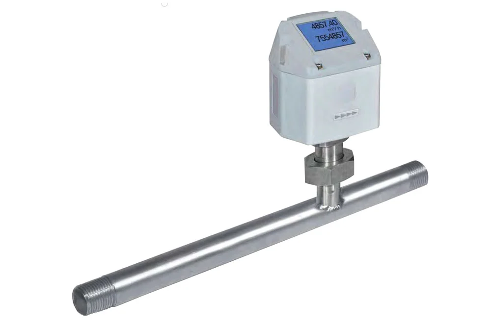 Calorimetric air or nitrogen flow meter in the installation, optionally for other gases. Available in two pressure ranges up to 16 bar and up to 40 bar. The principle of calorimetric measurement is based on cooling an electrically heated sensor by the flowing air. The cooling of the sensor is directly dependent on the mass flow of air, thus it does not require compensation for pressure and temperature. The digital meter measures the instantaneous flow rate and counts the total consumption of compressed air using pulses. This is displayed on the screen, and all measurements can be transmitted via a Modbus RTU standard connection. The flow meter can be quickly and easily disassembled without removing the entire measuring section from the installation for cleaning or calibration. The flow meter blind plug ensures continuous use of the line during cleaning. A bypass line for the measuring section is not required. The EW 850 flow meter, due to its compact design, can be used to measure the flow and consumption of air in all installation locations from the compressor to the smallest devices and tools. The measurement range should be appropriately selected according to the flow in the installation. Due to the possibility of measurement errors, it is necessary to avoid condensation on the sensor element or moisture in the transmitted medium. Do not exceed the operating ranges of the flow meter! When selecting a flow meter for gases other than air or nitrogen, please contact Tubes International. Working pressure: up to 16 bar or up to 40 bar. Material: stainless steel AISI 304 (measuring section, for the 16 bar version), stainless steel AISI 316 (measuring section, for the 40 bar version), polycarbonate (housing). Medium: air, nitrogen (option – other gases). Flow unit: m³/h, l/min. Accuracy: ± 1.5% of the measured value, ± 0.3% of full scale. Analog output: 4 ÷ 20 mA, < 500 Ω. Pulse output: 1 pulse per m³ or liter, galvanically isolated. Digital output: RS485, Modbus RTU. Operating temperature: -30°C ÷ +80°C.