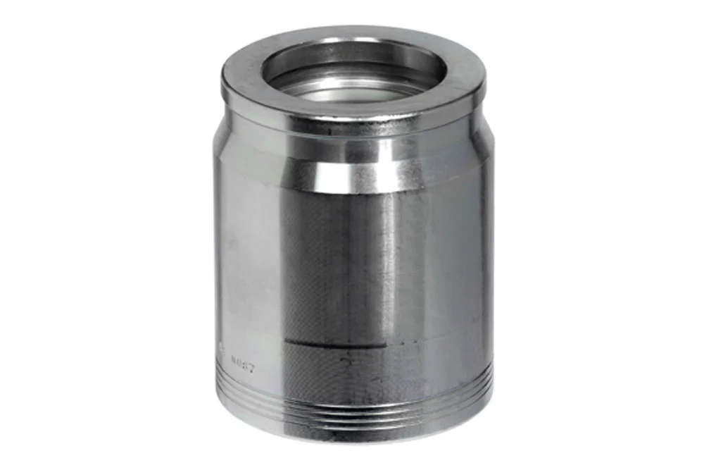 NON-SKIVE clamp sleeve for rubber hydraulic hoses with spiral reinforcement type 4SP, 4SH, R13, and R15. Use only with the appropriate NON-SKIVE hydraulic fitting from the same supplier. Material: carbon steel, galvanized.