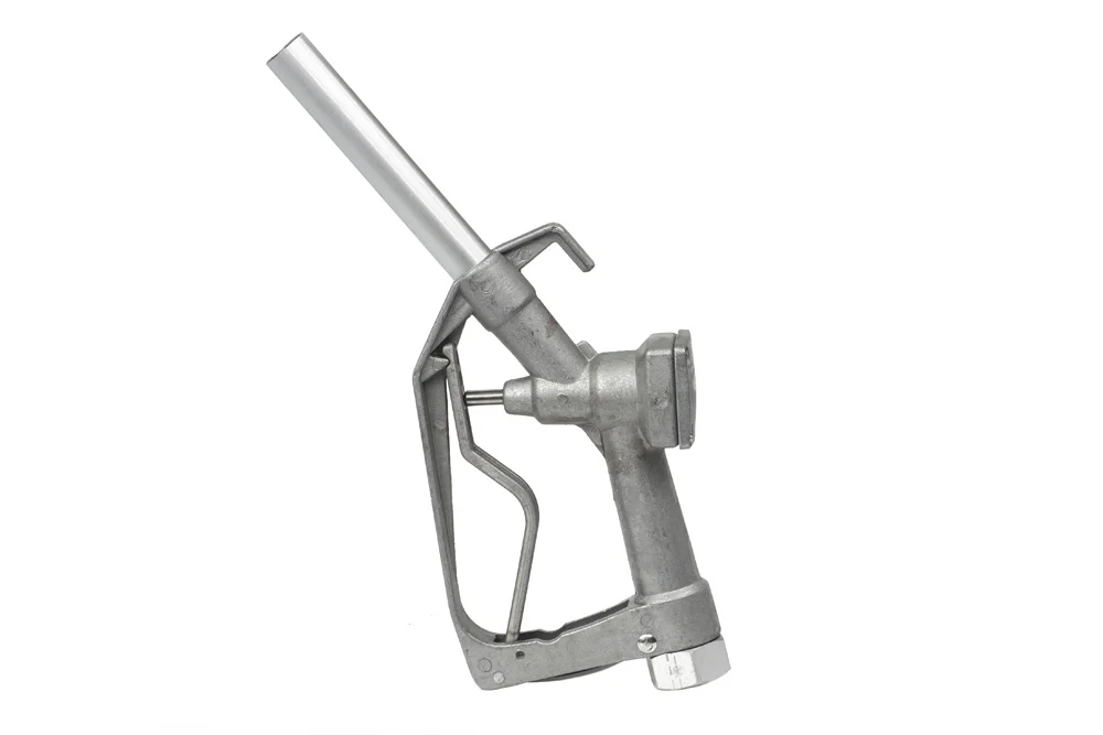 Fuel dispensing gun type 223 made of aluminum with a flow rate of 60 ÷ 120 l/min, intended for diesel fuel. Standardly equipped with a swivel connection GW 1″ BSP, which prevents hose twisting. It does not have an automatic fuel shut-off system, therefore it is not suitable for use with dispensers at fuel stations. Not intended for AdBlue® or unleaded gasoline. Outlet diameter: 25 mm. Material: aluminum. Color: silver. Flow rate: 60 ÷ 120 l/min. Swivel connection: yes.