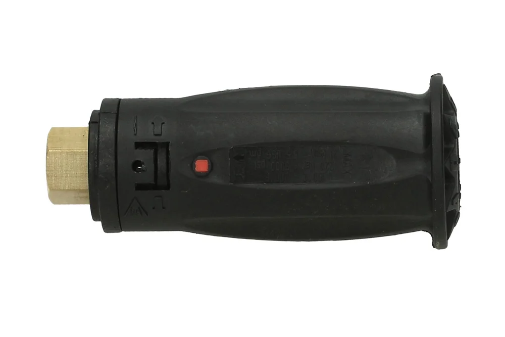 DUALJET adjustable nozzle head designed for MT1, MT2, and MT6 lance types. Adjustable spray angle and pressure (low or high). Outlet part finished with 1/4″ BSP internal thread. Head under index MH-160018 available without nozzle. Material: brass, stainless steel, and plastic. Working pressure: 220 bar. Operating temperature: +150°C.