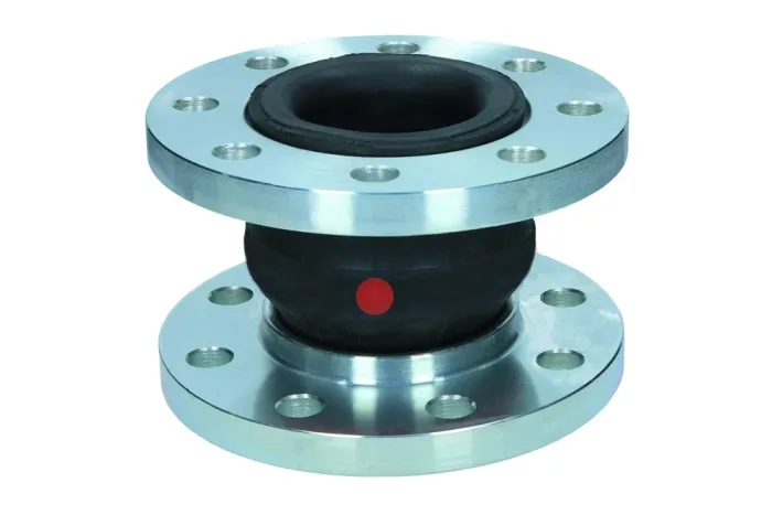 Designed for sanitary installations, cold and hot water, pool water, seawater, drinking water. Not suitable for mineral oils, cooling water with corrosion inhibitors containing oil, oil-laden air, and installations where the constant working pressure exceeds 10 bar. Marked on the sleeve with a single red dot. Inner layer: butyl rubber (IIR) / EPDM. Reinforcement: nylon cord. Outer layer: EPDM rubber. Flanges: galvanized carbon steel. Operating temperature: from -40°C to +90°C (temporarily +120°C depending on the medium).