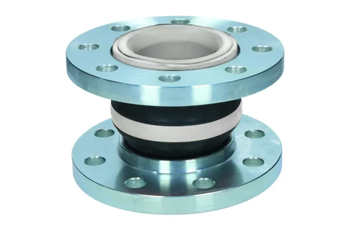 Designed for installation with food media, including those containing oils and fats. Not suitable for drinking water. Marked on the sleeve with a white stripe. Inner layer: white NBR (nitrile) rubber. Reinforcement: nylon cord. Outer layer: CR (chloroprene) rubber. Flanges: galvanized carbon steel. Operating temperature: from -20°C to +90°C (temporarily +100°C depending on the medium).