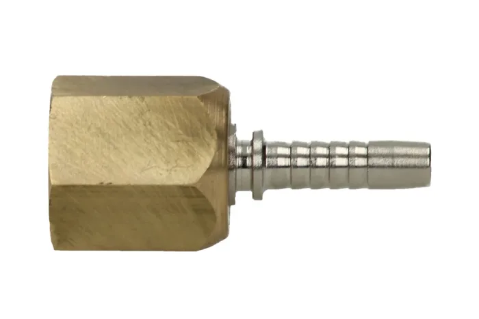 Internal threaded end with a brass nut for high-pressure washers. Material: carbon steel.