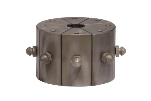 The P32 NMS crimping press is a basic stationary device for workshops, service centers, and small plants, intended for small-scale production of hoses. The larger head compared to the P20 allows for crimping hydraulic hoses up to 2″ in diameter. It is powered by a three-phase electric motor (400 V) with a power of 4 kW. The control of achieving the crimp diameter is done using an optical indicator (LED light), and once the diameter is reached, the press jaws stop. The crimp diameter setting is adjustable with a micrometric knob with a setting accuracy of 0.01 mm. All FINN-POWER crimping presses are designed to work with interchangeable jaw sets (ordered separately). For example, for a crimp diameter range from 10 to 87 mm, 17 sets of standard jaws from FP-32-10 to FP-32-78 should be ordered. The P32 NMS machine can also be equipped with a base or a bracket with sockets for storing jaws, complete with a magnetic holder for their quick exchange.