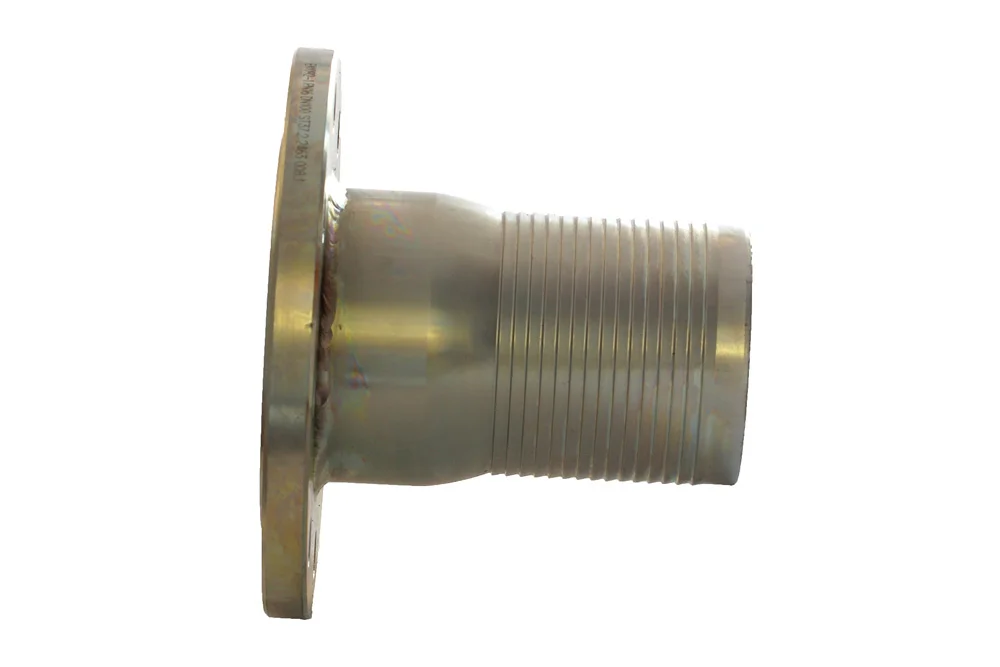 Fixed flange PN16 type CNWF made of carbon steel with a “tail” for hoses. Designed for rubber and plastic industrial hoses. Installation using straps or clamp bands. Material: carbon steel, galvanized.