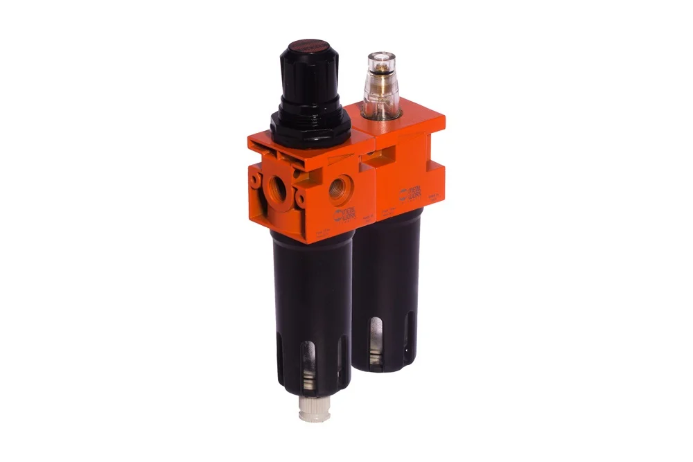 FR + L series NEW DEAL set with a high degree of reliability for heavy working conditions, featuring a piston-type reducer. It is characterized by stable set pressure under variable supply pressure, micrometric oil dosing adjustment proportional to air flow, guaranteed operation at low flow rates. Output pressure range: 0÷8, 0÷12 bar. Supply pressure: up to 18 bar, for discharge RA up to 10 bar. Operating temperature: up to +50°C. Connection: BSP 1/4″, 3/8″, 1/2″. Pressure gauge connection: BSP 1/8″. Condensate discharge: manual / semi-automatic (RMSA), automatic (SAC, RA). Flow rate: 500 l/min – 1/4″, 2200 l/min – 3/8″, 1/2″ (at input pressure 6 bar Δp = 1 bar).