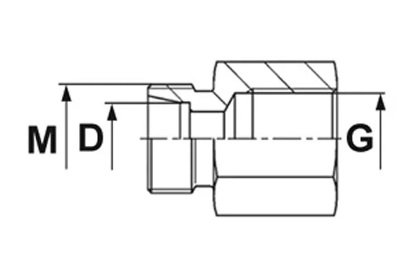 DIN 2353 screw connection, type GAI-B: 24° DIN 2353 socket with external metric thread and internal BSP thread. Available as: L (light series), S (heavy series). Surface coated with zinc-nickel with a layer thickness of 6-10 µm, characterized by very high corrosion resistance (up to 720 hours without corrosion in a salt spray chamber). Material: carbon steel, zinc-nickel.