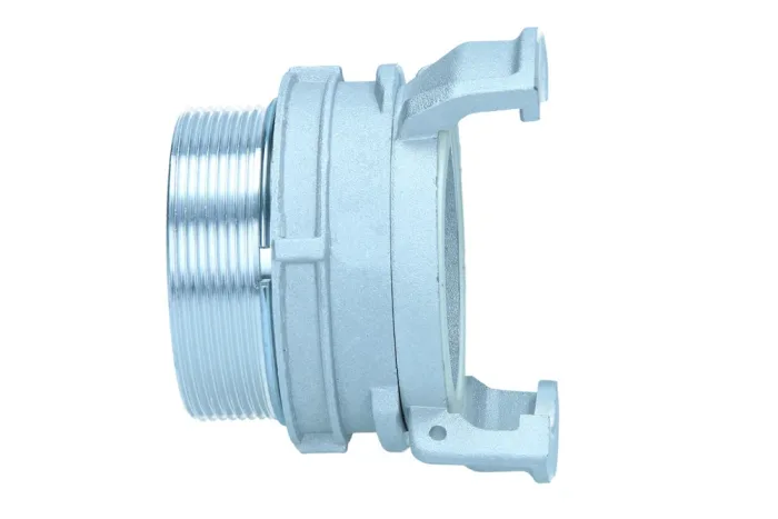 GUILLEMIN connector with external BSP thread intended for industrial and bulk material handling installations, granules. Not suitable for steam and gas transfer. The connector has a symmetrical design of the connection part. Manufactured according to standard EN 14420-8/NF-E-29572. Material: aluminum. Working pressure: 16 bar. Sealing: white NBR rubber. Operating temperature: from -10°C to +80°C.
