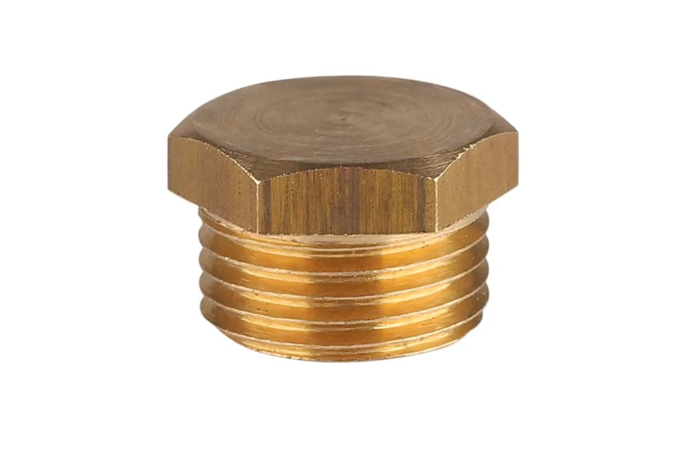 BSP external threaded plug for use in pipe connections, e.g., hot and cold water installations. Material: brass. Operating temperature: from -10°C to +100°C. Working pressure: 10 bar.