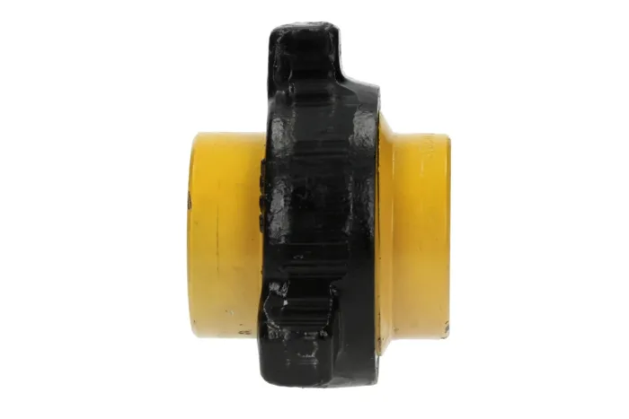 Low-pressure HAMMER LUG coupling type 100 for general applications. Widely used for the transmission of air, water, oil, and gas. Set: male part, female part + nut. Color: yellow (male, female parts), black (nut). Material: carbon steel A105. Connection: GW NPT. Sealing: metal/metal (cone). Pressure: 1000 PSI (69 bar).