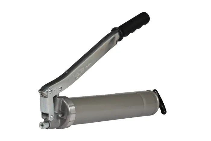 Hand-operated lever grease gun 75/PK silver 500 g without accessories. Body material: steel.