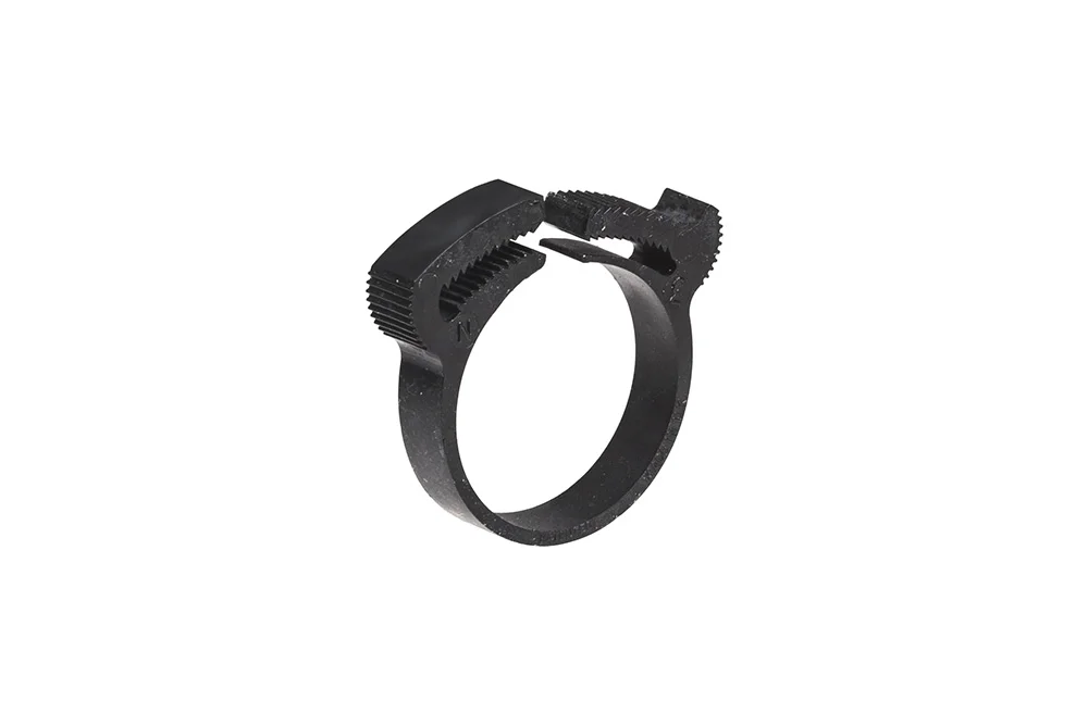 HERBIE CLIP® reusable hose ties made of black polyamide (PA66) resistant to UV rays. A polypropylene (PP) version is also available. The double tooth design provides more than twice the clamping force compared to similar products with only a single row. The design of the ties allows for easy and quick installation and removal using designated tools, standard “frog” type tools, or manually. Operating temperature: from -40°C to +125°C (PA66, temporarily up to +170°), from -40°C to +60°C (PP, temporarily up to +90°C).