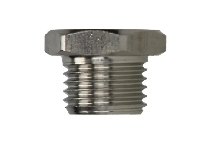 Hexagonal plug made of stainless steel type 62320 with external BSP thread. Material: AISI 316L steel. Operating temperature: from -20°C to +225°C. Working pressure: 140 bar.