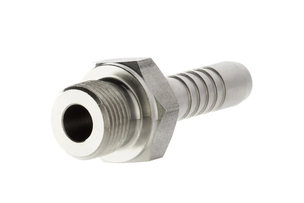 Standard hydraulic end (type Z – with a regular hydraulic “tail” for the hose), with external BSP thread, flat sealing – requires the use of an additional flat gasket (AGR-F). Designed for crimping in hydraulic and industrial hoses using a crimping sleeve suitable for the type of hose. Material: AISI 316L steel.