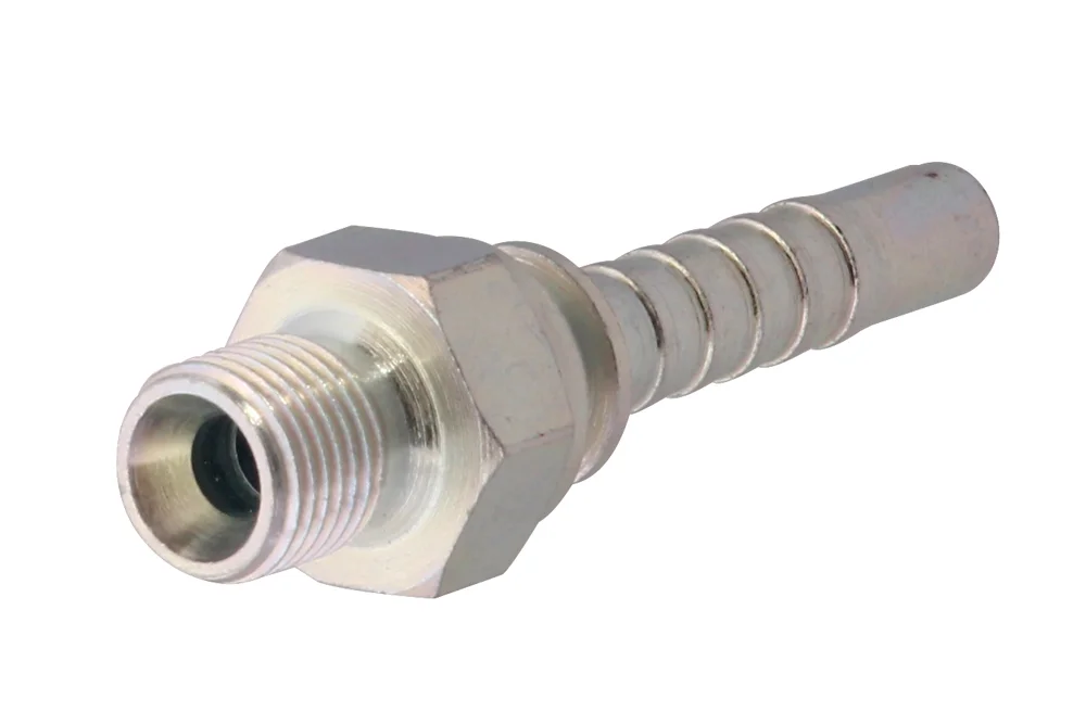 Standard hydraulic end (type Z – with a regular hydraulic “tail” for hoses), with external BSP thread, 60° sealing cone (AGR). Designed for crimping in hydraulic and industrial hoses using a crimping sleeve suitable for the type of hose. Material: carbon steel, galvanized.