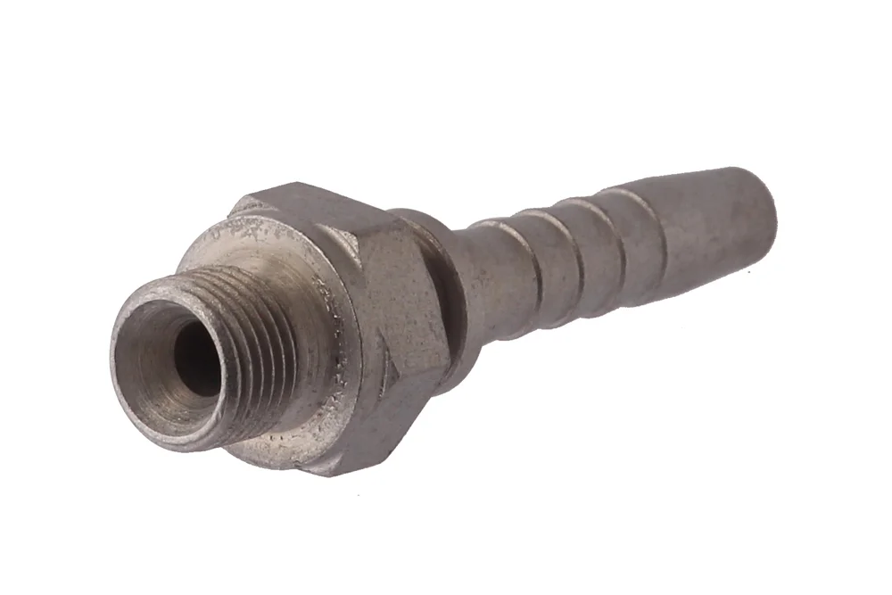Standard hydraulic end (type Z – with a regular hydraulic “tail” for the hose), with external BSP thread, sealing cone 60° (AGR). Designed for crimping in hydraulic and industrial hoses using a crimping sleeve suitable for the hose type. Surface coated with zinc-nickel with a layer thickness of 6-10 µm, which is characterized by very high corrosion resistance (up to 720 hours without corrosion in a salt chamber). Material: carbon steel, zinc-nickel.