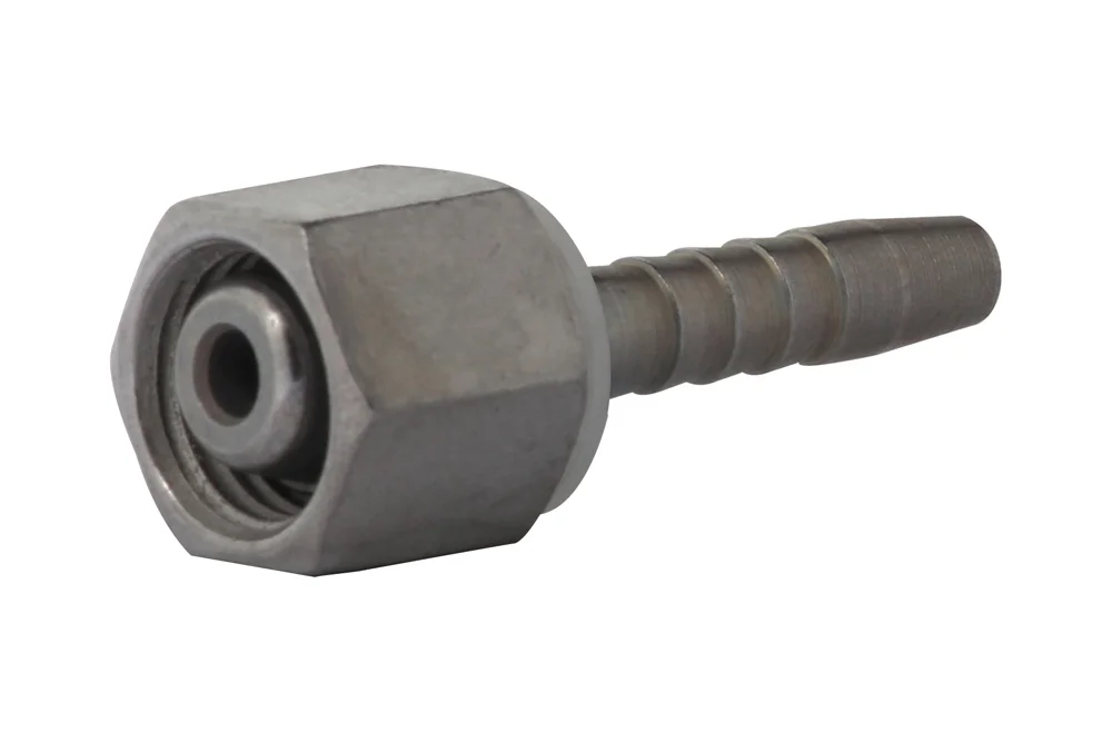 Standard hydraulic end fitting (type Z – with a regular hydraulic “tail” for hose), with internal metric thread and nut, metal-metal sealing, universal cone 24°/60° (DKL), lightweight series. Designed for crimping in hydraulic and industrial hoses using a crimping sleeve suitable for the hose type. Surface coated with zinc-nickel with a layer thickness of 6-10 µm, characterized by very high corrosion resistance (up to 720 hours without corrosion in a salt spray chamber). Material: carbon steel, zinc-nickel.