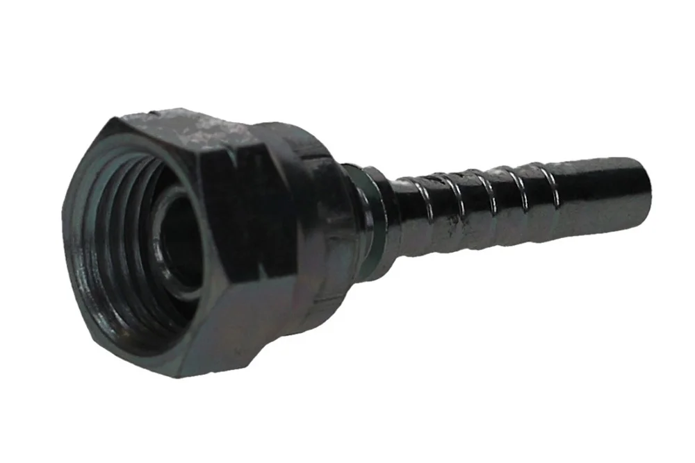 Standard hydraulic end (type Z – with a regular hydraulic “tail” for the hose), with internal metric thread and nut, metal-metal sealing on a 60° cone (DKM). Designed for crimping in hydraulic and industrial hoses using a crimping sleeve suitable for the type of hose. Material: carbon steel, galvanized.