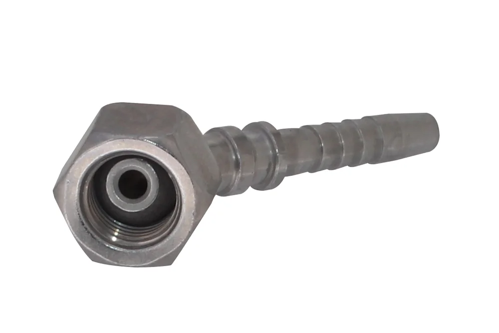 Standard hydraulic end fitting (type Z – with a regular hydraulic “tail” for hose), with internal BSP thread and nut, sealing cone 60° (DKR), angled 45°. Designed for crimping in hydraulic and industrial hoses using a crimping sleeve suitable for the hose type. Surface coated with zinc-nickel with a layer thickness of 6-10 µm, characterized by very high corrosion resistance (up to 720 hours without corrosion in a salt spray chamber). Material: carbon steel, zinc-nickel.