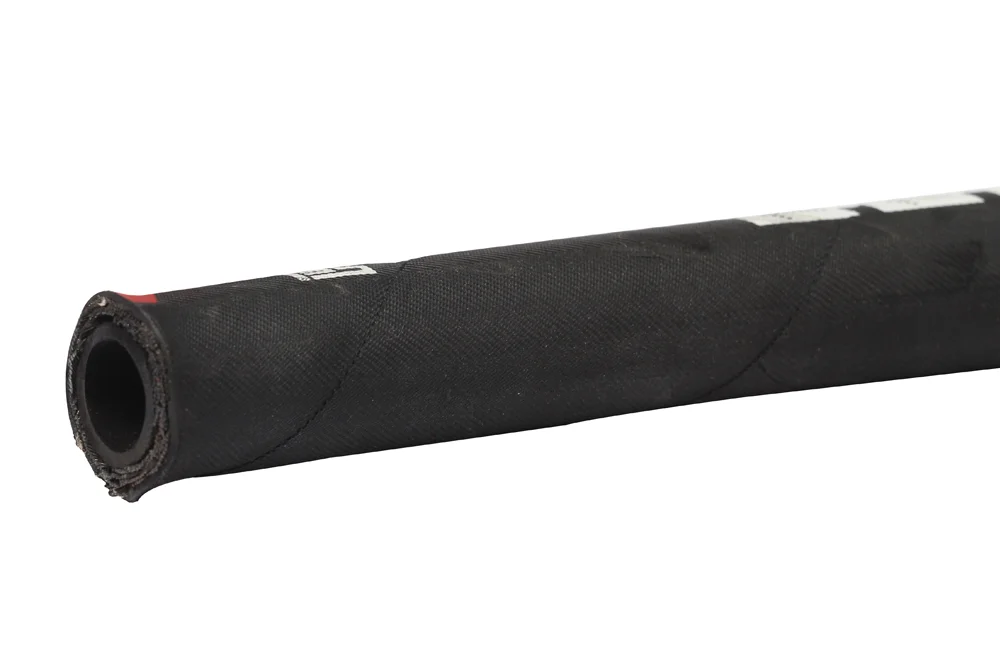 General-purpose hydraulic hose. Standards: EN 853 2SN, SAE100 R2AT. Inner layer: black, oil-resistant synthetic rubber. Reinforcement: double steel braid. Outer layer: black, oil-resistant synthetic rubber. Working pressure: from 80 bar to 415 bar depending on hose diameter. Operating temperature: from -40°C to +100°C (temporarily +120°C). For water and air, maximum operating temperature +70°C. For air above 17 bar, micro-perforation of the outer layer is required.