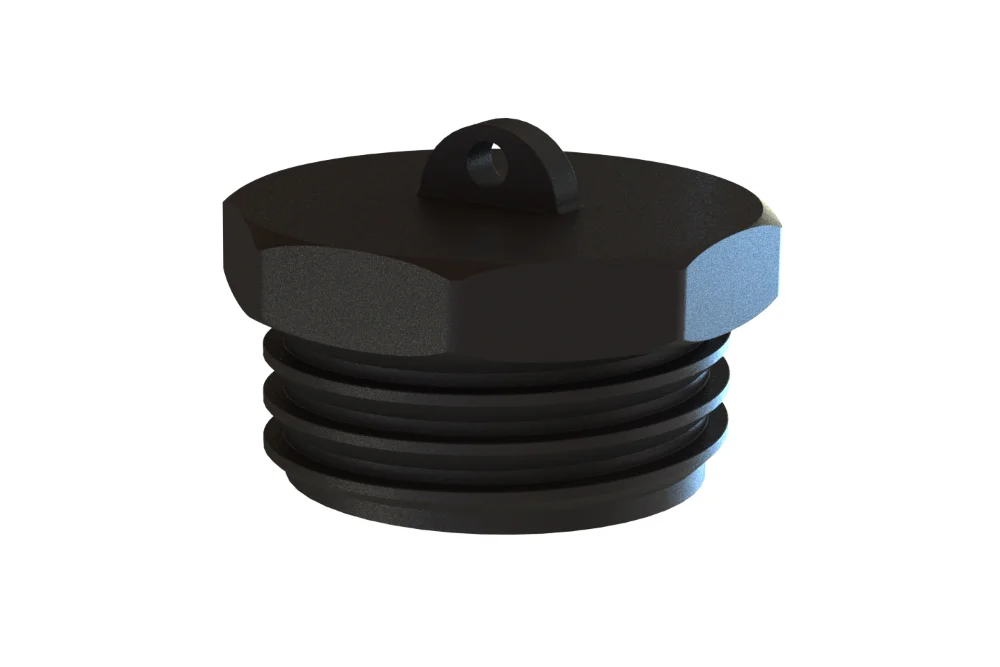 Trapezoidal external threaded plug compliant with DIN EN 12713 standard, fully compatible with the threads in IBC containers from various manufacturers. Material: polypropylene. Working pressure: up to 7 bar. Operating temperature: from -10°C to +70°C (temporarily up to +80°C).