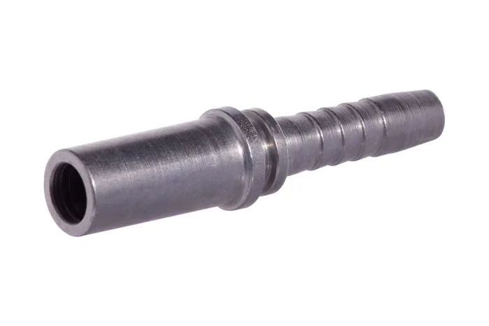 Standard hydraulic end (type Z – with a regular hydraulic “tail” for the hose), with a metric tube, sealing with a locking ring (BES), heavy series. Designed for crimping in hydraulic and industrial hoses using a crimping sleeve suitable for the hose type. Surface coated with zinc-nickel with a layer thickness of 6-10 µm, characterized by very high corrosion resistance (up to 720 hours without corrosion in a salt chamber). Material: carbon steel, zinc-nickel.