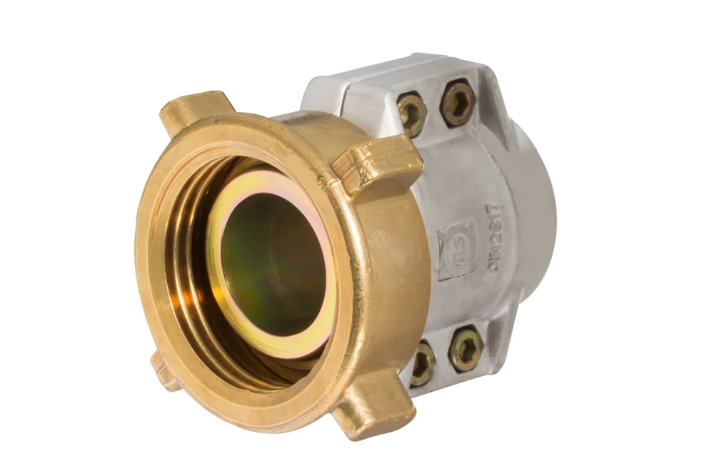 MSL threaded coupling with galvanized steel hose end, brass nut and aluminum clamp EN 14420-3 (DIN 2817)