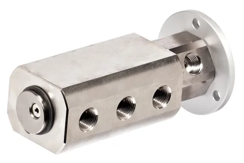 Logical element NOT-negation. Control by compressed air, reset by mechanical spring. Mounting in any position. Material: body – plastic, spindle – aluminum, sealing – NBR. Nominal flow: 100 Nl/min at 6 bar with a pressure drop of 1 bar. Built-in plug couplings for 4 mm tubing. Operating temperature: from -10°C to +60°C. Working pressure: 0 to 8 bar. Control pressure: 1.5 to 8 bar.