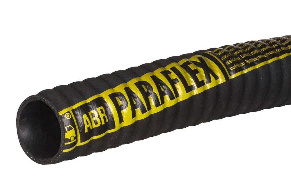 Very lightweight and extremely flexible rubber hose for dust extraction, powders, and other lightly abrasive materials. The inner layer is smooth, made of wear-resistant rubber with a thickness of 2.4 mm. The outer layer is corrugated, resistant to abrasion and weather conditions. Thanks to the steel spiral reinforcement, it is resistant to kinking and vacuum up to 0.6 bar. Not intended for use with positive pressure, designed only for vacuum (extraction). Due to its lightness and exceptional flexibility for a rubber hose, it performs excellently in vacuum cleaning systems in the industry, such as in quarries or foundries. It features a copper anti-static wire for discharging electric charges. Inner layer: black natural rubber. Reinforcement: synthetic cord, steel spiral. Outer layer: black SBR rubber. Vacuum: up to 0.6 bar. Operating temperature: from -40°C to +70°C.
