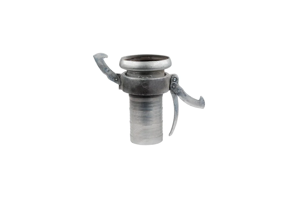 PERROT lever connector socket with a turned end for hose with wide applications, including in agriculture, horticulture, industry, construction, road and tunnel building, groundwater drainage, wastewater treatment plants, sewage discharge, environmental protection. Material: carbon steel, galvanized. Sealing: SBR. Working pressure: up to 10 bar.