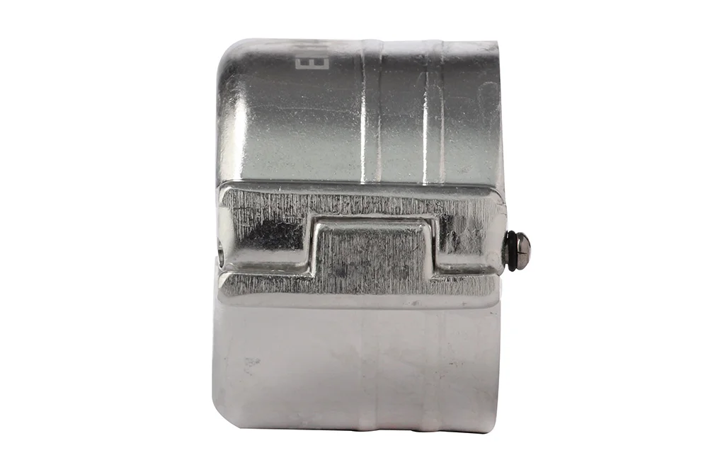 Shell clamp designed for securing industrial hoses on smooth or corrugated ends with a protective flange. It is closed by tightening in a vice and driving in a stainless steel mounting pin (included). It features smaller external dimensions than screw-type shell clamps. Material: clamps – aluminum, pin – stainless steel. Working pressure: 25 bar (with appropriately selected hose and end EN 14420-3).