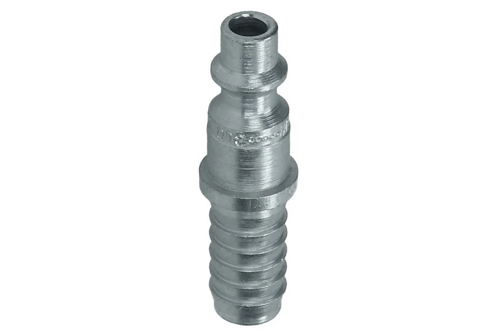 CEJN DN5.3 quick coupling plug with hose end. Versatile use in the industry, mainly in pneumatic installations. Working pressure: 16 bar. Material: hardened steel, galvanized.