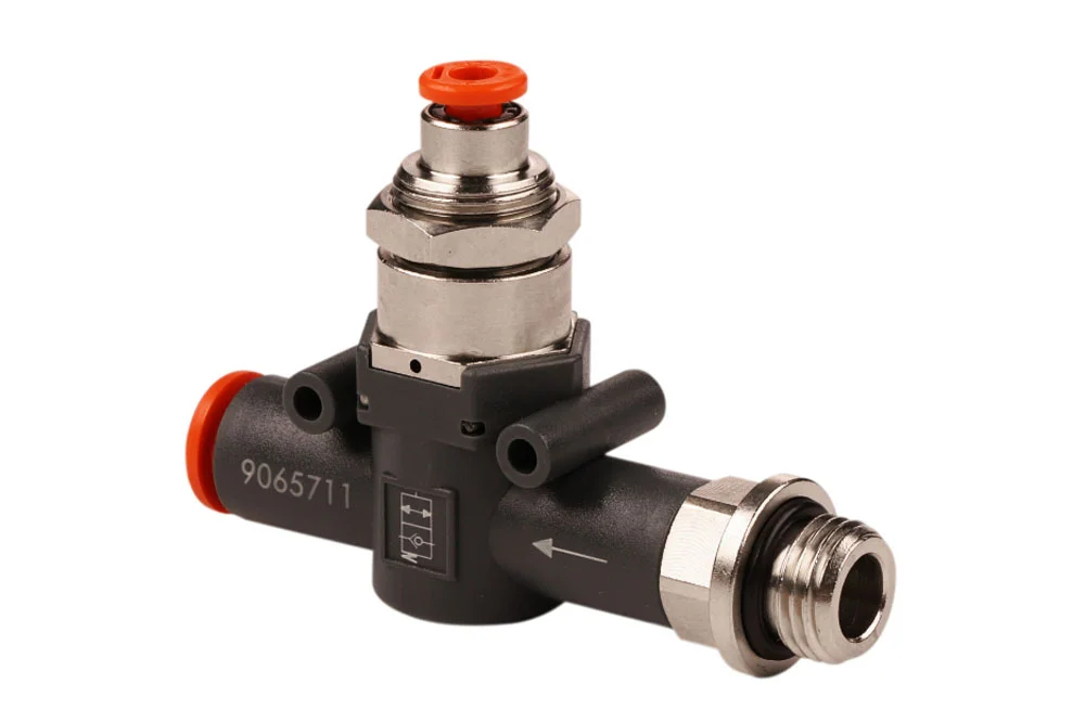 Cut-off valve type STP L 2/2 unidirectional in the version with threaded connection with an O-ring on one side and a plug-in connection on the other side (thread – hose) intended for direct installation in the supply connection of the actuator (according to the flow direction indicated by an arrow on the valve body). A properly connected STP L valve allows for free flow of supply air to the working chamber of the actuator, while preventing its venting without applying control pressure to the plug-in connection Ø4 (Ø5/32”). Operating pressure: 10 bar. Operating temperature: from -20°C to +60°C. Medium: filtered compressed air, oiled or non-oiled.
