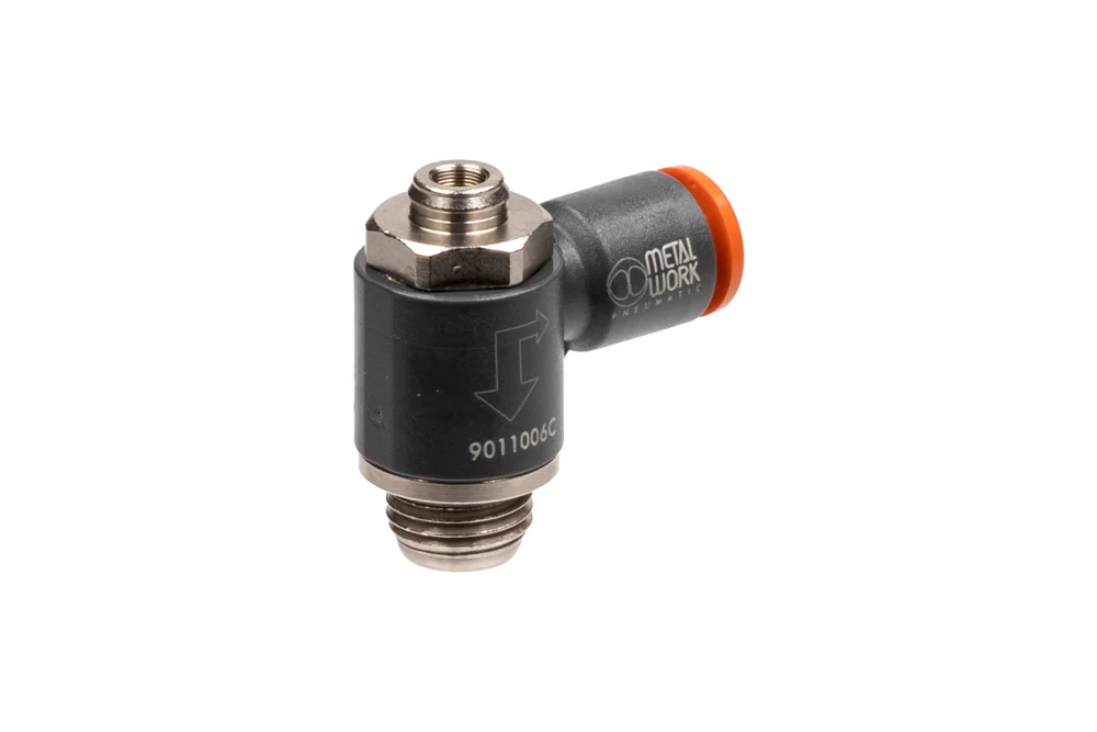 Throttle-return valve type MRF OTC series COMPACT “O” for direct mounting in actuator connections, used in pneumatic systems for regulating the flow rate of compressed air and the direction of flow. Equipped with a plug connection for easy disassembly of pneumatic hoses. Adjustment change using a screwdriver, with the possibility of mounting a protective cover. Size: M5, 1/8″, 1/4″, 3/8″, 1/2″. Working pressure: up to 10 bar. Operating temperature: from -10°C to +50°C. Material: plastic.