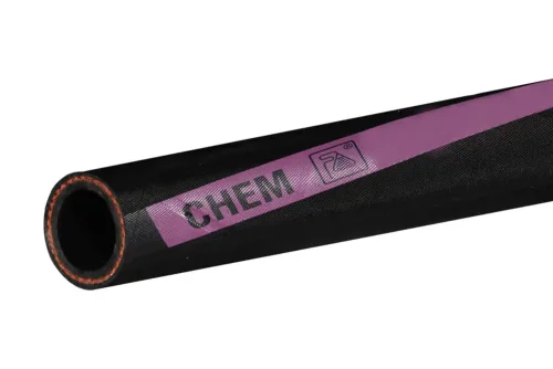 Pressure hose for the transport of anhydrous ammonia in liquid and gaseous form. Inner layer made of thick antistatic rubber (R≤106 Ω/m). Reinforcement with high-strength cord ensures a high safety factor of 5:1. Outer layer made of antistatic rubber (R≤106 Ω/m) resistant to chemicals, abrasion, ozone, and weather conditions, microperforated. Hose compliant with the requirements of standard EN ISO 5771:2008 for rubber hoses for the transport of anhydrous ammonia. The hose is particularly intended for ammonia in the production processes of nitrogen fertilizers, cleaning agents, and for the synthesis of many chemical compounds. It can also be used in other industrial sectors utilizing anhydrous ammonia, such as industrial refrigeration (refrigerant R717 – ammonia, used in large refrigeration systems; flexible hoses are primarily used for filling installations), metallurgy, and many others. The hose can also be used for ammonia dissolved in water – ammoniacal water, widely used in industries such as wastewater treatment (pH regulator), ion-exchange resin regeneration, rubber and plastics industry, and boiler water treatment. Inner layer: black synthetic rubber. Reinforcement: synthetic cord. Outer layer: black synthetic rubber, microperforated. Working pressure: 25 bar. Operating temperature: from -40°C to +55°C.
