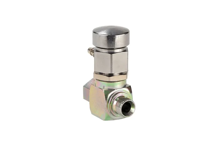 Manual valve allowing for the release of excess oil in the system back to the tank and reducing the accumulated oil pressure in the system with the valve. Installed between the part of the system equipped with quick couplings and the pressure supply part. After releasing the excess hydraulic oil, the connection of the quick couplings becomes possible. Material: galvanized steel (body), brass (valve). Sealing: NBR. Operating temperature: up to +90°C.