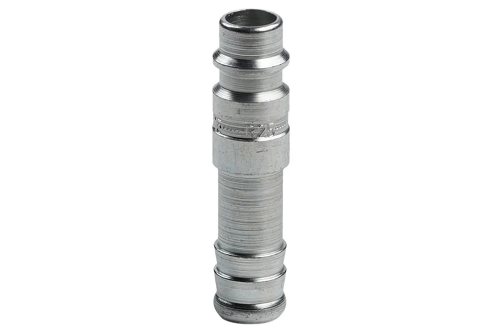 Quick coupling plug DN7.8 without valve, with hose end, intended for compressed air, liquids, and gases. The plug is interchangeable with all quick couplings according to Eurostandard DN7.2 from other manufacturers. Working pressure: 35 bar. Material: hardened, galvanized steel. Operating temperature: from -20°C to +100°C.