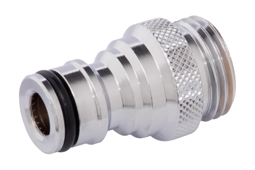 Quick coupling plug for water NiTO CLICK 1/2″ with external thread. NiTO CLICK quick couplings are water quick couplings made according to the profile of very popular plastic garden quick couplings and are compatible with them. Sealing is achieved using an o-ring placed externally on the plug. Manufactured in Denmark – 5 years warranty. They maintain the simplicity of commonly known plastic quick couplings and are characterized by strength and durability. Designed for water, water with cleaning agents for use in industry, services, horticulture, agriculture, etc. Material: chrome-plated brass (matte – satin). Working pressure: up to 25 bar. Operating temperature: from -30°C to +80°C. Sealing: NBR (not suitable for gasoline and oils).