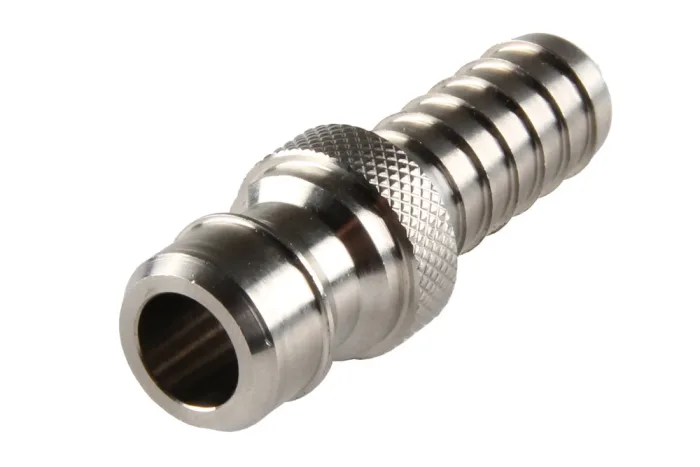 Quick coupling plug NiTO made of AISI 316L stainless steel with a hose end. Available in two systems: 1/2″ and 3/4″. Used in conditions with high hygiene and corrosion resistance requirements (e.g., food industry, hospitals). Direct connection of components from different systems is not allowed, e.g., a 1/2″ socket with a 3/4″ plug. Material: AISI 316L steel. Working pressure: 25 bar. Operating temperature: from -20°C to +150°C. Sealing material: viton.