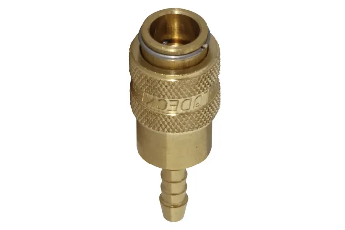 Quick-connection socket for air with MINI valve DN5, with hose connection, brass, 35 bar