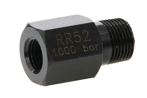 Reducing nipple with external thread enabling the connection of quick couplings and UHP hoses, as well as connecting to UHP connection blocks. Working pressure: from 2000 bar to 3000 bar (depending on thread size). Material: carbon steel, black galvanized.