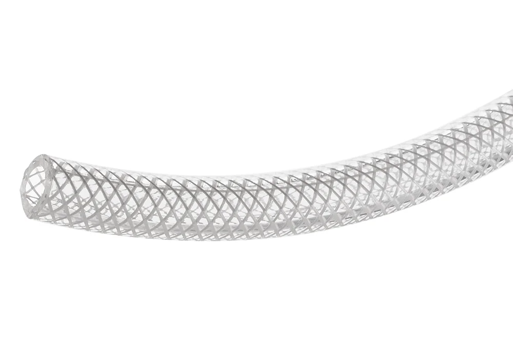 Universal flexible high-quality polyurethane hose with a braid produced in the United Kingdom. Designed for water, air, oils, fuels, lubricants, chemicals, and granules. Stronger than similar PVC hoses, maintaining its shape, resistant to kinking, hydrolysis, and abrasion, flexible at low temperatures. Contains no cadmium, silicone, plasticizers, or halogen compounds. Inner layer: transparent polyurethane-polyether. Reinforcement: polyester braid. Outer layer: transparent polyurethane-polyether. Working pressure at 20°C: from 10 bar to 20 bar – depending on the hose diameter. Operating temperature: from -30°C to +70°C (temporarily +100°C). As the operating temperature increases, the working pressure value of the hose decreases.